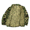 Vintage Duck Hunter camouflage shirt with the classic green, brown, and tan blotched pattern. This is a lightweight, shirt-weight garment with a button-front design and no manufacturer or size tags present.