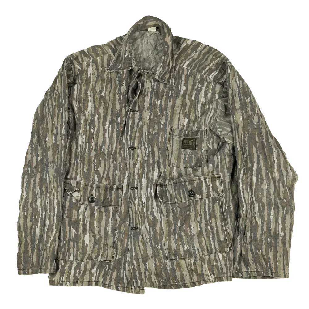 Vintage Liberty hunting shirt in a Realtree camouflage pattern. Made in the USA with a button-front design and utility pockets.