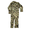Vintage Walls insulated overalls in Duck Hunter camouflage. One-piece construction with a zip-front entry and an attached hood. Quilted insulation is built in throughout.