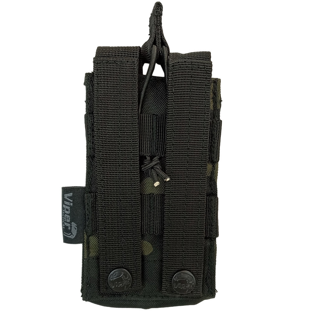 Want something a bit quicker and quieter reloading mags with instead of the ol' hook & loop flaps? These 'single shingle' mag pouches utilise a pull tab and bungee cord to keep retention on the mag but also easy to access. The retention can be adjusted at the rear depending on your mag height but these are generally designed for a single 5.56 mag. Equipped with MOLLE at the rear you can add these to any tactical surface such as 1st line belts, chest rigs, vests or backpacks. The front is also covered in MOLLE so you can add another layer of these pouches or any similar sized pouch.
