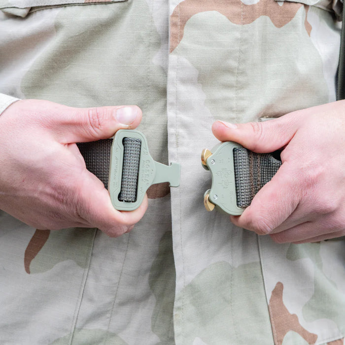This belt by Direct Action is made entirely of a rigid webbing, and fastens with industry-recognized AustriAlpin Cobra® Buckle. Can be worn as stand-alone item, with Inner Belt (MUSTANG) or as the inner belt for the MOSQUITO Modular Belt Sleeve. These belts will fit the HORNET Skeletonized Belt Sleeve if the adjustable end's belt clasp is removed, threadded through, then reattached.
