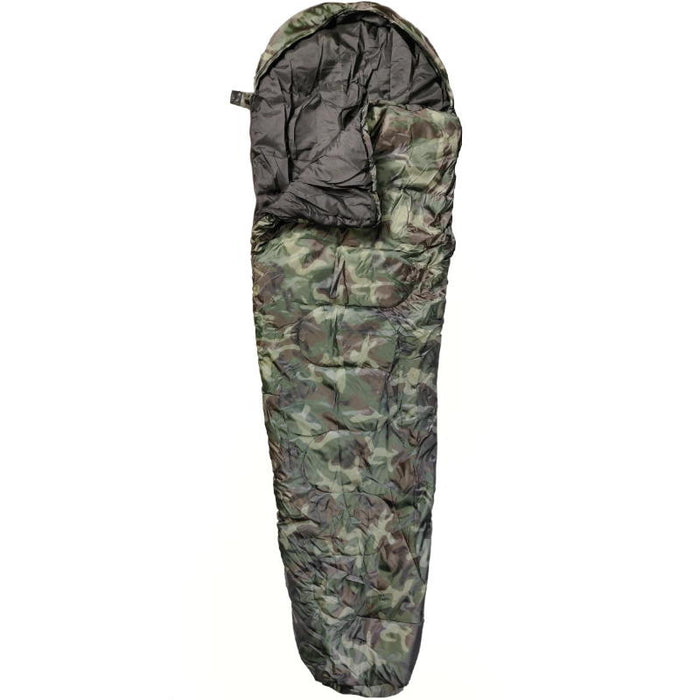 Why settle for a boring, plain sleeping bag when you could wrap yourself in woodland camo? This two-season sleeping bag will provide you with a comfortable sleep for spring and summer camping trips. Made from polyester with a lightweight 2-layer synthetic filling.