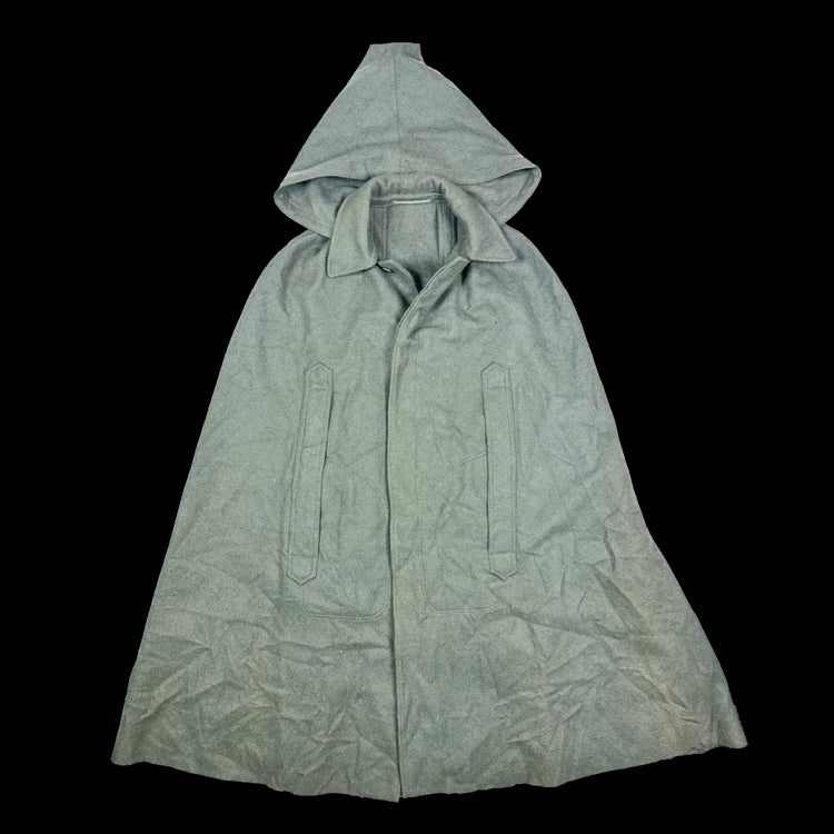 Yugoslavian JNA Mountain Troops wool cloak in size Medium. Heavy wool construction with a button front closure, arm openings at the front, and an adjustable hood. Manufacture date is 1977.